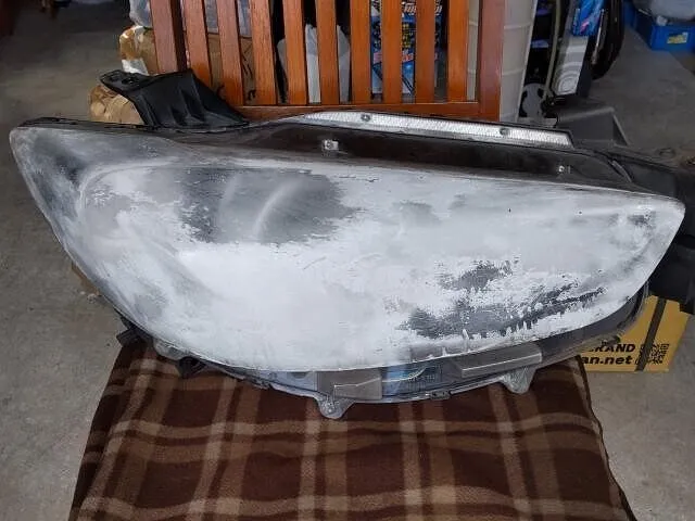 今回は写真のCX-5、曇ったヘッドライトを持ち込み交換修理です。